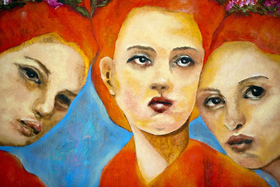 These aspects of the Graces came to me in a dream, insisting on being painted. They wear crepe myrtle in their hair, and invite us all to the dance. They are a promise and portend of creativity, beauty, and joy to come.